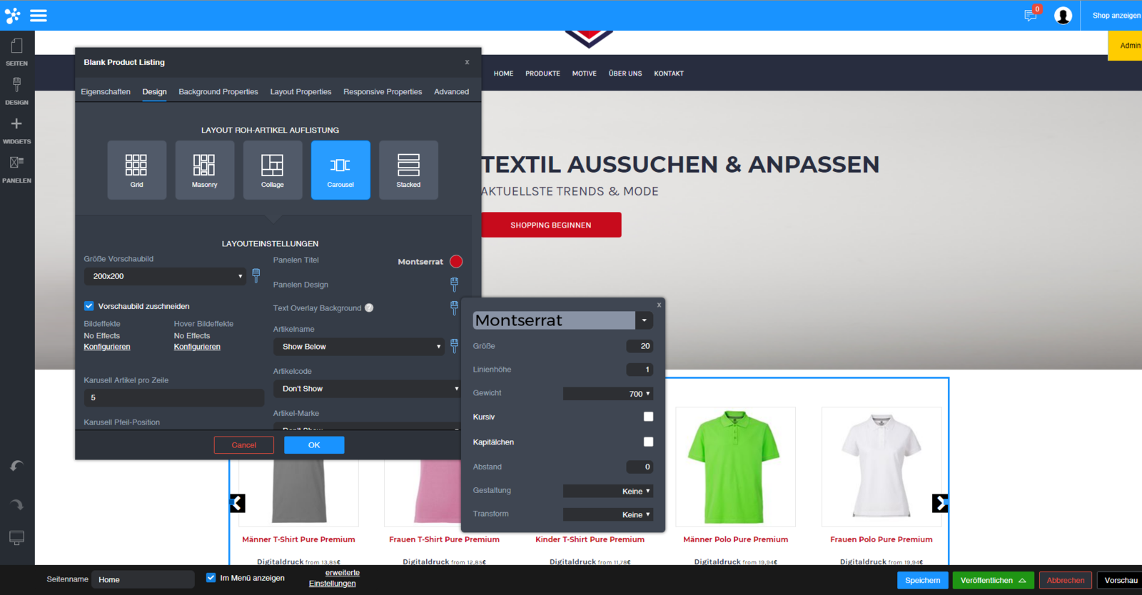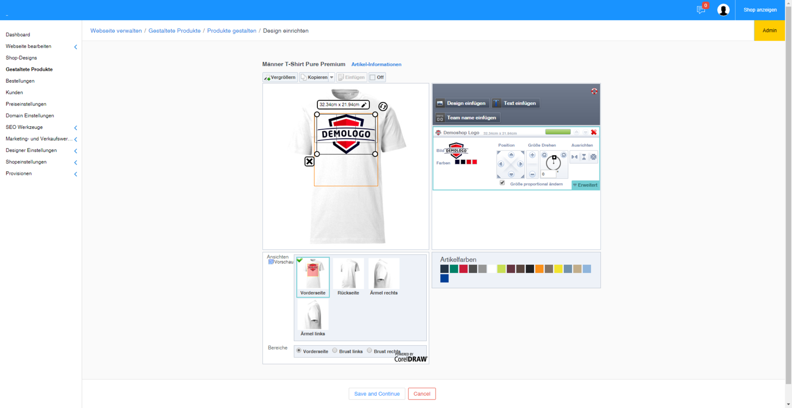 Unter Gestaltete produkte haben Sie die Möglichkeit Artikel für Ihren Shop zu konfigurieren.