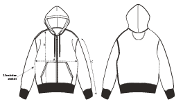 • 2-Nadel-Steppnaht mittig auf der Naht am Saum, Bündchen und Armausschnitt