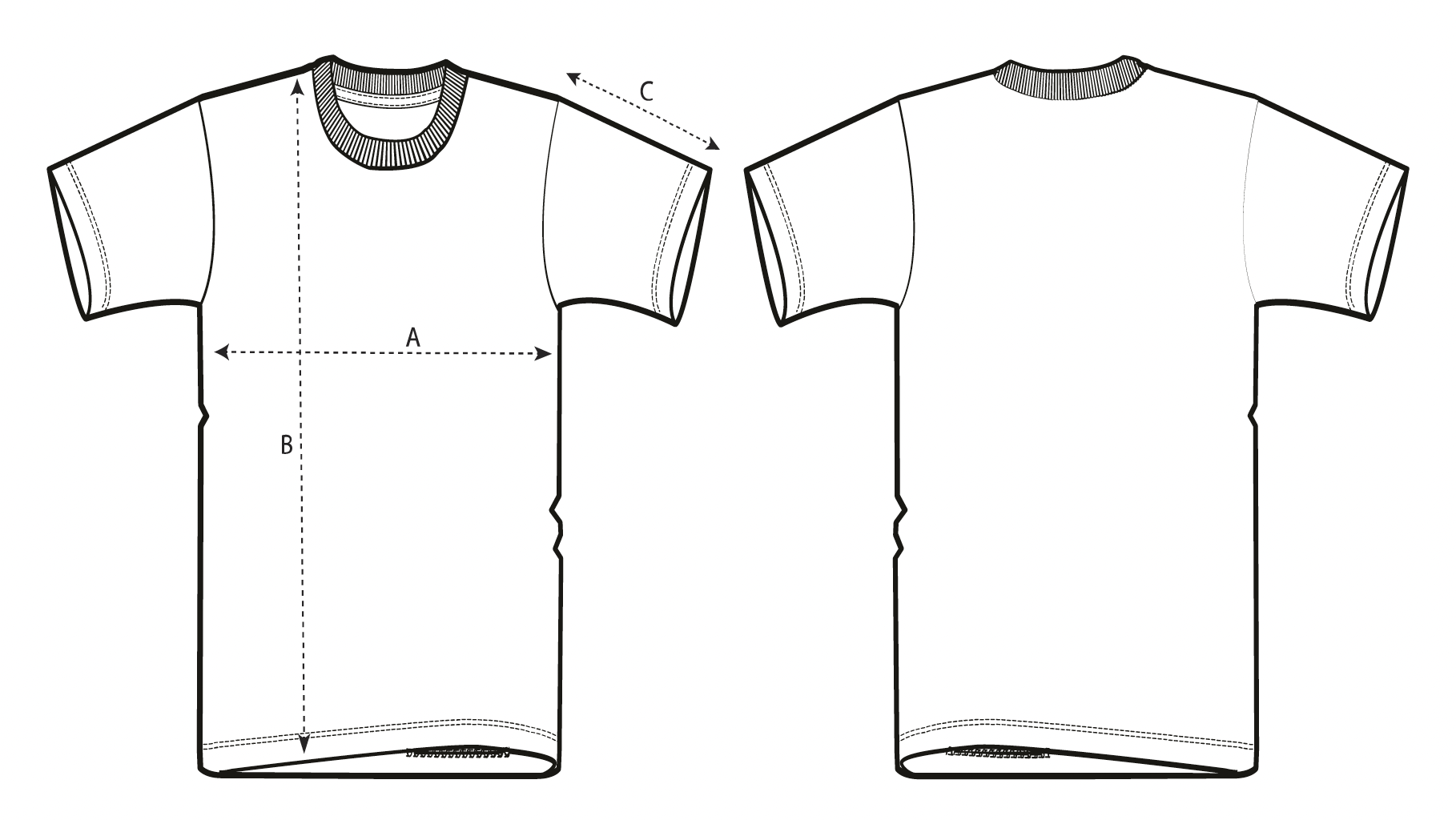 • Enge Doppelnaht-Steppnaht an Ärmelbündchen und Saum